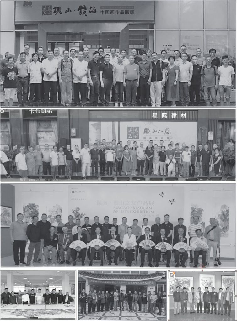 2019 年 11 月,“镜海·榄山之友画展”(澳门)在澳门基金会教科文展览厅隆重举行,榄山八友全体成员出席了开幕式,其间两地艺术家共同创作十米长卷《榄溪秋菊图》(榄山八友收藏)。