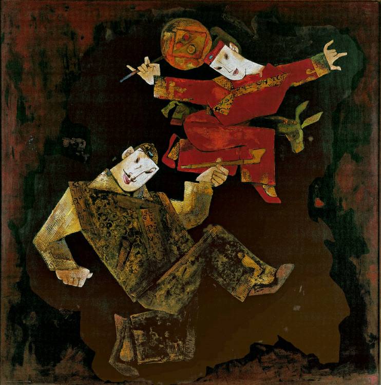 | 漆画《皓月红烛》获1989年第七届全国美展金奖,这是当代中画美术史上第一枚全国美展漆画金牌,并为中国美术馆收藏。 |