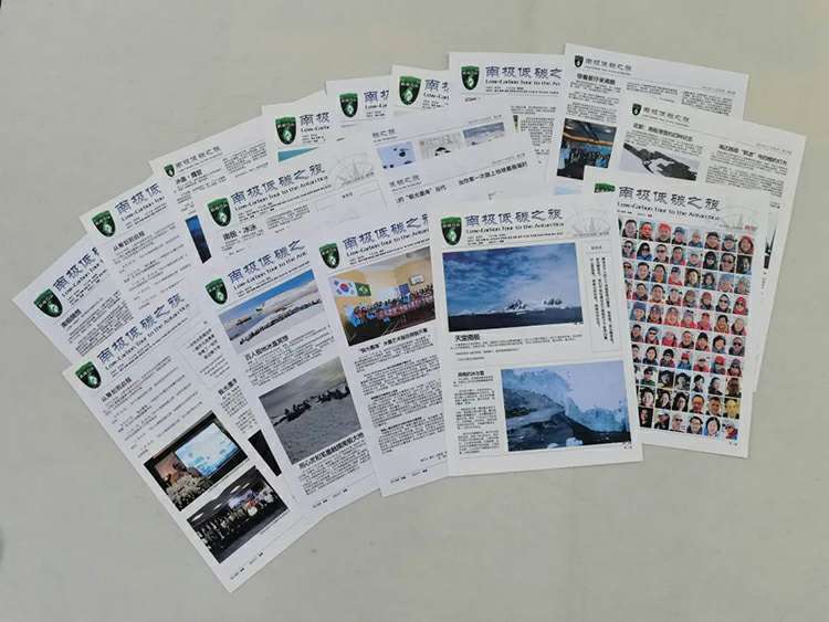 这些人除了证书还多收获了一叠报纸。这群人里多是热情、有趣和能干的人,他们决意要每天出一期报纸,用图文记录旅行全程,记录大家与南极接触的感悟及与南极生灵的对话,也刊载与低碳和南极有关的科普知识。报纸不仅丰富了旅途生活,更是给日后留下了一份回忆。